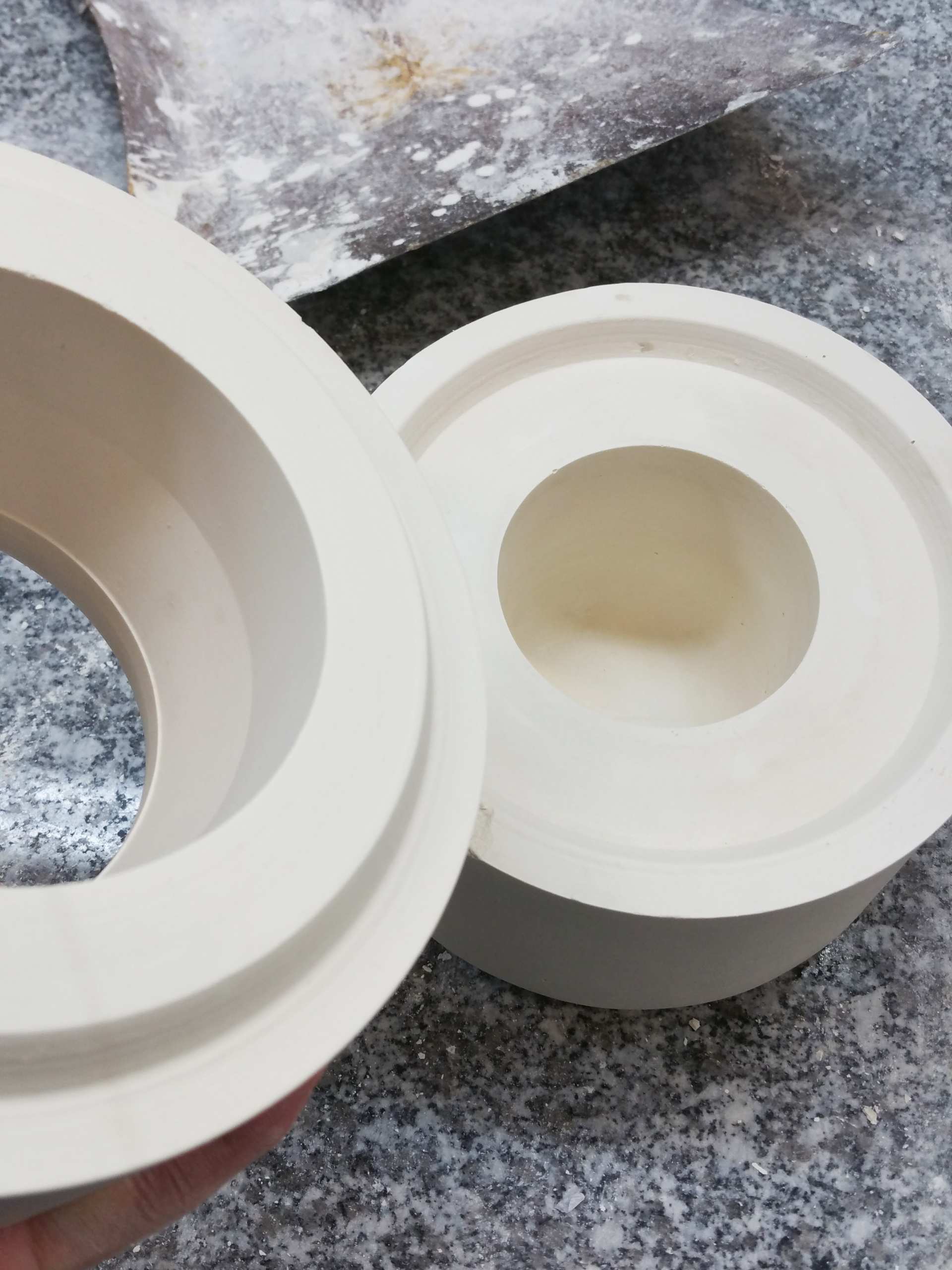 Techniques : Réalisation d’un moule en plâtre, coulage barbotine, émaillage, tournage d’une pièce en bois.